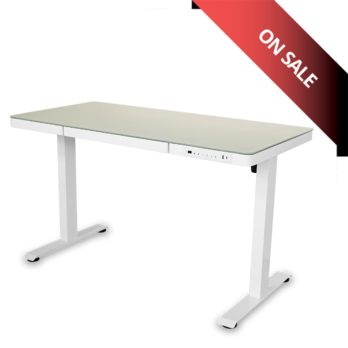 Birou reglabil electric Vitaholm Executive White Glass Top